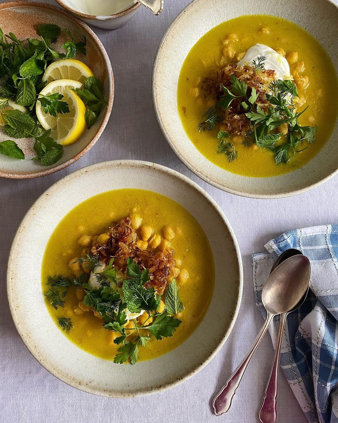 Florence Blair’s Golden Chickpea & Lemon Soup with Sticky Shallots